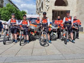 Während die Motorradstaffel in der Logistik sowie zur schnellen Versorgung außerhalb der Kirchenmeile eingesetzt waren, waren die Rescuebiker ständig auf der Kirchenmeile und in der Innenstadt unterwegs, um auch hier schnelle Erste Hilfe bei Stürzen, Insektenstichen oder Kreislaufproblemen leisten zu können.