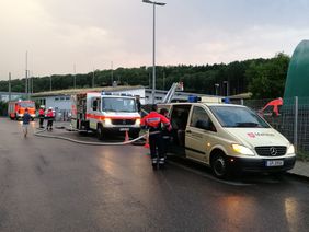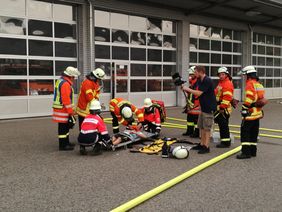 Am Freitagabend (07. Juli 2017) hieß es für die Helfer der SEG sowie die Kameraden der Feuerwehr Uhingen ‚Film ab‘! Ein professionelles Filmteam von Mercedes-Benz begleitete die gemeinsame Übung der beiden Hilfsorganisationen, um ein Werbevideo über zwei Mitarbeiter von Mercedes-Benz zu drehen, welche sich in ihrer Freizeit ehrenamtlich bei der Feuerwehr Uhingen engagieren. Übungsszenario war ein angenommener Brand im örtlichen Bauhof. Es kam zu einer starken Rauchentwicklung, sodass mehrere Personen noch vermisst waren und sich nicht selbstständig ins Freie retten konnten. Die Feuerwehren aus Uhingen und Diegelsberg mussten die Verletzen unter Atemschutz aus der verrauchten Fahrzeughalle sowie über die Drehleiter vom Dach des Gebäudes retten. Nachdem die Personen aus dem Gefahrenbereich gebracht und an die Helfer der SEG übergeben wurden, erfolgte die medizinische Erstversorgung auf dem eingerichteten Patientenmodul. Insgesamt gab es für die SEG fünf Patienten zu versorgen, welche über Atemnot, Bewusstseinsstörungen und Kreislaufprobleme klagten. Die Verletztendarsteller wurden durch die Jugendfeuerwehr Uhingen gestellt. Im Anschluss an die eigentliche Übung wurde auf dem Gelände der Kläranlage eine letzte Filmsequenz gedreht - ein Einsatz bei einem Pkw-Brand. Dieser befand sich bereits im Vollbrand und konnte durch eine Besatzung des HLF (Hilfeleistungslöschgruppenfahrzeug) schnell gelöscht werden. Die Filmaufnahmen werden den Maltesern durch Mercedes-Benz zur Verfügung gestellt und demnächst ebenfalls auf der Homepage zu sehen sein.