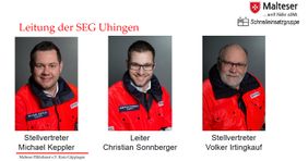 Neuer Leiter der SEG ist Christian Sonnberger, welcher bereits seit über 12 Jahren ehrenamtliches Mitglied bei den Maltesern ist. Begonnen hat er damals im Schulsanitätsdienst und ist mittlerweile ausgebildeter Rettungssanitäter und Zugführer. Neben seiner Tätigkeit in der SEG ist er noch Leiter der Sanitätseinheit Mittleres Filstal, stellvertretender Gruppenführer der Rescuebiker und aktives Mitglied im Rettungsdienst. Unterstützt wird er durch seine beiden Stellvertreter Michael Keppler, Rettungssanitäter und Zugführer, sowie durch Volker Irtingkauf, Einsatzsanitäter und Gruppenführer, welche beide ebenfalls langjährige Mitglieder im Malteser Hilfsdienst und der SEG sind. Zusammen stellen sie die neue Leitung der SEG und sind für die Planung der Fortbildungen, Durchführung von Übungen sowie der Einsatzführung verantwortlich. Weitere Informationen zur SEG der Malteser finden Sie unter: www.malteser-goeppingen.de/dienste-und-leistungen/notfaelle/schnelleinsatzgruppe.html