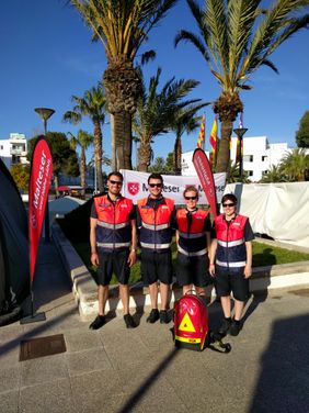 Die Veranstalter des Festivals setzten bereits im 6. Jahr auf den Sanitätsdienst der Fahrradstaffel aus Göppingen. Neben den Ausstellern auf dem Messegelände locken auch geführte Touren aller Schwierigkeitsgrade die Besucher an die Bucht um Alcúdia. Als bei einem Fahrer die Friktion der Reifen in der Kurve der fliehenden Masse nicht mehr standhält, kommt es zum Kontakt mit dem Asphalt – der Fahrer ist gestürzt. Schürfwunden zählen zu den üblichsten Blessuren der Rennradfahrer. Nach Stürzen auf der Teststrecke versorgt der Sanitätsdienst der Malteser die Wunden fachgerecht, um Wundinfektionen zu vermeiden und einer verzögerten Wundheilung vorzubeugen.