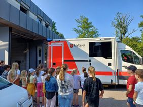 Kaum haben am vergangenen Mittwoch die wohlverdienten Sommerferien gestartet, begann am Donnerstag und Freitag das Schülerferienprogramm bereits um 9 Uhr morgens bei den Maltesern. 5 Stunden lang, durften je 15 Schülerinnen und Schüler aus Uhingen die Rettungswache der Malteser mit Sitz in der Johannesstrasse 1 kennenlernen. Angeleitet vom Schulsanitätsdienst und unterstützt vom Rettungsdienst wurde die Fahrzeughalle erkundet, Verbände angelegt und Erste-Hilfe Maßnahmen geprobt und durchgeführt. Neugierig und unerschrocken erforschten die Mini-Sanitäter das Innenleben des Rettungswagens, durften funken und die Sirene laufen lassen. „Solche Momente sind wichtig, um Kindern im Ernstfall die Angst zu nehmen“, so der Rettungsdienst der Malteser