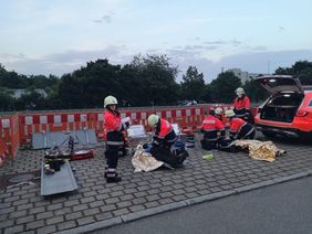 Am Freitag, den 20. Mai 2022 fand eine Übung der Feuerwehr Uhingen mit der SEG-Erstversorgung (SEG-E) der Malteser Uhingen statt. Geübt wurde die technische Rettung von Verletzten aus Höhen und Tiefen. Die Übungsannahme war ein Szenario, bei welchem drei Bauarbeiter auf einer Baustelle vermisst waren und erst nach einer Absuche des Areals verletzt gefunden wurden. Die Rettung gestaltete sich technisch anspruchsvoll, da die Personen zum Teil mit der Drehleiter über das Dach oder über Leitern aus einer Baugrube gerettet werden mussten. Hierbei kam es insbesondere auf das gute Zusammenspiel der Feuerwehr und den Helfenden des Malteser Hilfsdienstes an. Nachdem die Verletzten gerettet waren, erfolgte die weitere medizinische Versorgung in einem standardisierten Behandlungsmodul der SEG-E. Insgesamt fünf Patienten mit unterschiedlichen Verletzungsmustern wurden durch die insgesamt 8 Helferinnen und Helfer der SEG erstversorgt.