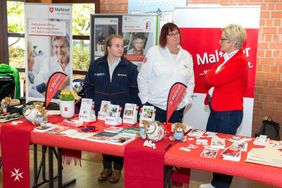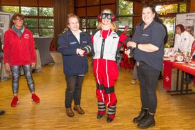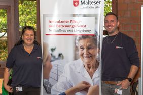 Hier präsentierten wir uns mit hauptamtlichen Angeboten wie Menüservice, Hausnotruf und natürlich unserem Pflegedienst für Gladbeck und Umgebung. Ehrenamtliche Helfer informierten beispielsweise zum Miteinander-Füreinander-Projekt, dem Herzenswunsch-Krankenwagen und zu unserem umfangreichen Ausbildungsangebot. Als "Eyecatcher" erwies sich hier unser Alterssimulationsanzug, den wir in der sozialpflegerischen Ausbildung einsetzen. Künftige Pflege- und Betreuungskräfte können sich nach dieser Erfahrung besser in die alten und gebrechlichen Menschen hineinversetzen, die ihnen anvertraut werden, indem sie typische Altersgebrechen und Einschränkungen am eigenen Körper "erleben". Unsere Bürgermeisterin Bettina Weist ließ sich beim Besuch an unserem Stand gerne auch selbst "altern" und bekam einen Eindruck davon, wie sich beispielsweise ein alter Mensch an der Supermarktkasse fühlt, wenn mit der unruhigen Schlange im Rücken das Kleingeld in der Geldbörse gesucht wird.
