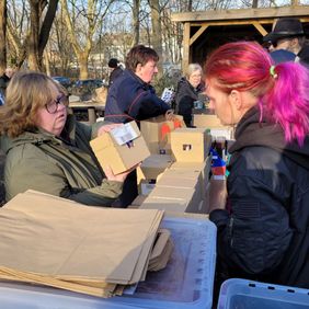 Hier waren die Damen dann "mittendrin" im Trubel und konnten sich einen eigenen Eindruck von unserer Wärmebusarbeit verschaffen.Herzlichen Dank, auch im Namen unserer Schützlinge vom Treff, für diese großzügige Unterstützung unserer Arbeit.