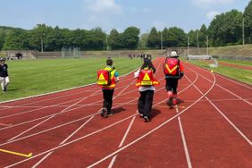 Während die jungen Athletinnen und Athleten in den Disziplinen Sprint, Weitsprung, Weitlauf, Kugelstoßen und Ausdauerlauf ihr Bestes gaben, sorgten unsere ehrenamtlichen Einsatzkräfte für die sanitätsdienstliche Sicherheit bei der Veranstaltung. Die sportlichen Leistungen der Schülerinnen und Schüler motivierten auch unsere Einsatzkräfte, außer Konkurrenz die ein oder andere Runde zu laufen.