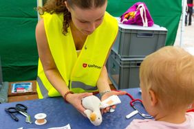 Da durften wir natürlich nicht fehlen, so haben wir einmal mehr unsere Kuscheltierklinik aufgebaut. Ärztliche Versorgung für kleine Plüschpatienten war damit gesichert, unsere fleißigen Helfer hatten einen Riesenspaß, genau wie unsere kleinen Besucher und behandelten Bauchschmerzen, Fieber, Prellungen (Teddy hat alle Süßigkeiten aufgegessen und ist dann vom Stuhl gefallen) und vieles mehr. Nach einer ausführlichen Anamnese ging es über die Untersuchung zum Röntgen, dann in den „Behandlungsraum“ und schließlich noch zur Apotheke. Weingummis sollen übrigens eine stark fiebersenkende Wirkung haben …