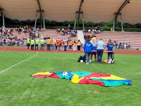 Über 350 Schüler und Schülerinnen der Jordan-Mai-Schule und der Gelsenkirchener Albert-Schweitzer-Schule kamen gestern, begleitet von zahlreichen Helfern und Betreuern, im Gladbecker Stadion zusammen zu einer Begegnung mit Spiel, Bewegung und ganz viel Spaß. An 14 Stationen konnten die Kinder und Jugendlichen ihre Geschicklichkeit testen, Bewegungsspiele ausprobieren, einfach nur Spaß haben und sich dabei auch noch an einer Fotostation ablichten lassen.