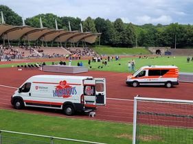 Wir waren dabei mit unserem Wärmebus, aus dem heraus durstige Teilnehmer mit kühlem Trinkwasser versorgt wurden. Die Kinder und Jugendlichen waren mit solchem Eifer bei der Sache, dass auch unseren Sanis nicht langweilig wurde. So einige kleinere Blessuren mussten behandelt werden, aber nichts wirklich dramatisches war dabei.