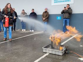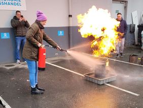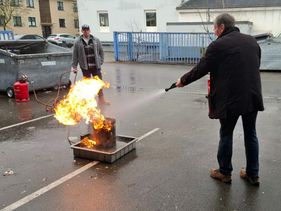 So wurden wir im Umgang mit handbetätigten Feuerlöscheinrichtungen unterwiesen und erwarben die Kenntnis, welche Gefahren von Bränden und im Besonderen von Brandrauch ausgehen.
