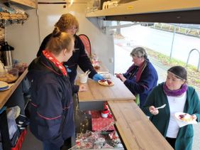 Unser Wärmebus war mit von der Partie, hier bot Claudia viele süße selbstgebastelte Geschenke an, im geheizten Seniorenbüro saß Andrea hinter einem Tisch mit gestrickten und gehäkelten Mützen, Handschuhen, Schals und anderen nützlichen Dingen, der Erlös kommt obdachlosen Hunden zugute.