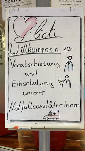 Im Anschluss begrüßte die Schulleitung die Auszubildenden des neuen Jahrgangs. Auch sie werden nun drei Jahre in Theorie und Praxis am MBZ geschult. Erstmalig startet eine Notfallsanitäter-Klasse in einer Stärke von 18 Schülerinnen und Schülern.