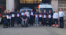 Dominik Kost, seit 40 Jahren Malteser, ehemaliger Ausbildungsreferent in Schwerte und hauptamtlich im Dortmunder Rettungsdienst - leider in Folge seiner aktiven Immunisierung gegen SARS-CoV2 an den Rollstuhl gefesselt - erhielt von der stellvertretenden Diözesanleiterin das Jubiläumsabzeichen.