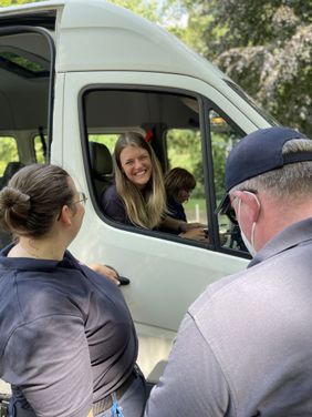 Am Sonntag, 24.07.2022 waren insgesamt 28 ehrenamtlich Helfende, von der Schülerin bis zur Notärztin aus den Stadtverbänden Gladbeck, Recklinghausen und Haltern am See und von den niederländischen Maltesern auf dem Halterner Annaberg im Einsatz. So übernahmen mehrere Fahrzeuge den Transport der Pilger von den Parkplätzen im Gewerbegebiet "Krumme Meer" auf den für den Verkehr gesperrten Annaberg oder sie kochten in der Gulaschkanone schmackhafte Erbsensuppe oder brieten Würstchen. Natürlich standen für das Kerngeschäft der Malteser auch zahlreiche Einsatzkräfte zur medizinischen Versorgung der Pilger zur Verfügung. Der Einsatz begann für die ersten Helfenden schon um 06:00 Uhr morgens und die letzten beendeten ihren Dienst um 18:00 Uhr am Abend. Insgesamt leisteten die Malteser acht Mal Erste Hilfe (in der Regel Insektenstische), leider musste aber auch ein Wallfahrer nach einer erfolgreichen Reanimation ins Krankenhaus gebracht werden.