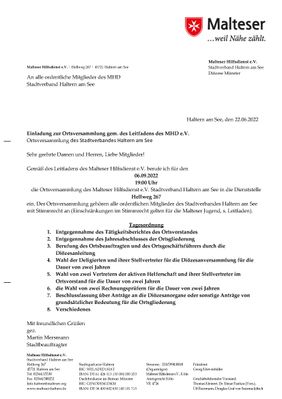 ein. Der Ortsversammlung gehören alle ordentlichen Mitglieder des Stadtverbandes Haltern am See mit Stimmrecht an (Einschränkungen im Stimmrecht gelten für die Malteser Jugend, s. Leitfaden).