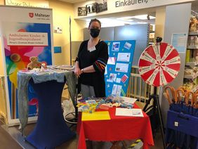 Die Volksdorfer Filiale "Stadtperle" unterstützt seit fünf Jahren den Ambulanten Kinder- und Jugendhospizdienst der Malteser. Kürzlich stellte ein kleines Malteser-Team im Rahmen eines solchen Patentages erneut seine Arbeit vor. Infomaterial über die Unterstützungsangebote für Familien mit schwerstkranken Kindern, ein bunt geschmückter Stand und ein Glücksrad luden Budni-Kundinnen und -Kunden zum kurzen Verweilen ein. An der Kasse hatten sie anschließend die Möglichkeit, ihre Einkaufssumme zugunsten der Hospizarbeit aufzurunden. Insgesamt kamen so 415 Euro zusammen. Diese Summe wird direkt für die betreuten Familien eingesetzt, so können damit z.B. Ausflüge oder besondere Aktionen mitfinanziert werden.
