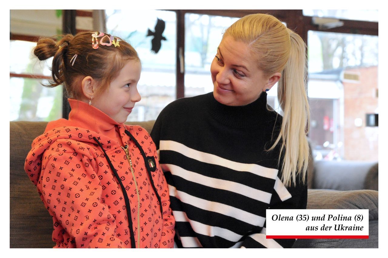 Mit ihrer achtjährigen Tochter Polina und ihrer Mutter versucht Olena aus Charkiw sich in Hamburg ein neues Leben aufzubauen. Die 35-Jährige hat in ihrer Heimat als Friseurin, Kosmetikerin und im Bereich Finanzen gearbeitet. Vor dem russischen Angriffskrieg ist Olena sehr gern gereist, die junge Frau tanzte leidenschaftlich gern oder traf sich mit Freundinnen. Heute macht sich Olena große Sorgen um ihren Mann, der im ukrainischen Militär dient. Die Tochter Polina besucht eine Spezialklasse einer Hamburger Schule, wo sie auf Deutsch unterrichtet wird. Die Achtjährige spielt Geige, singt, tanzt, schwimmt gern und macht Akrobatik.