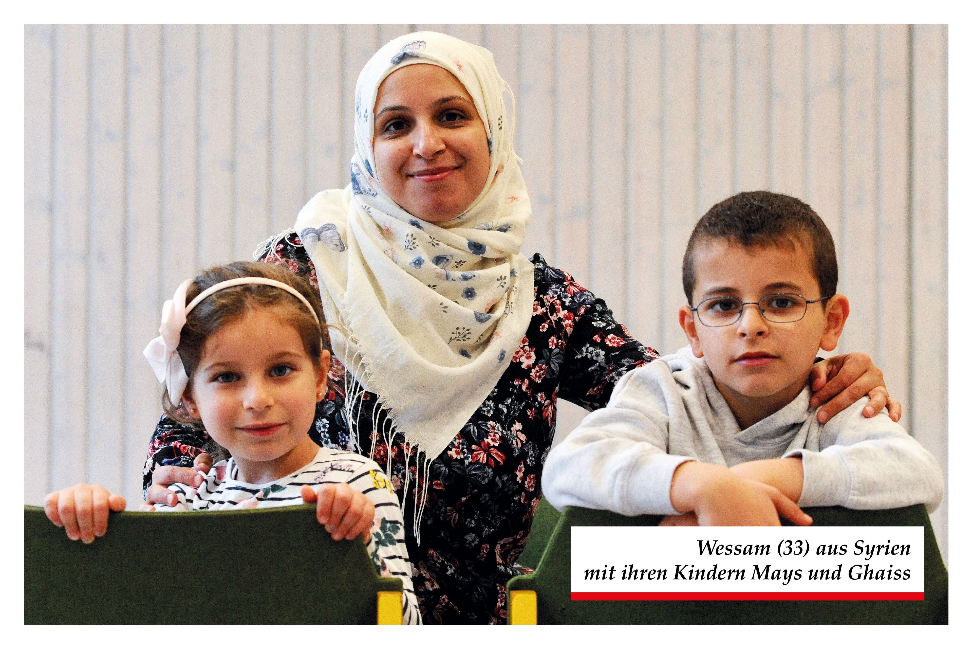 Wessam ist mit ihrem Mann Bassem 2016 aus Syrien geflüchtet. Bassem arbeitet als Elektriker und Wessam als Erzieherin im Kindergarten. Beide Kinder gehen gern in die Schule. Mays möchte gern einen Hund haben. „Ich bin Bayern- und HSV-Fan“, sagt Ghaiss.