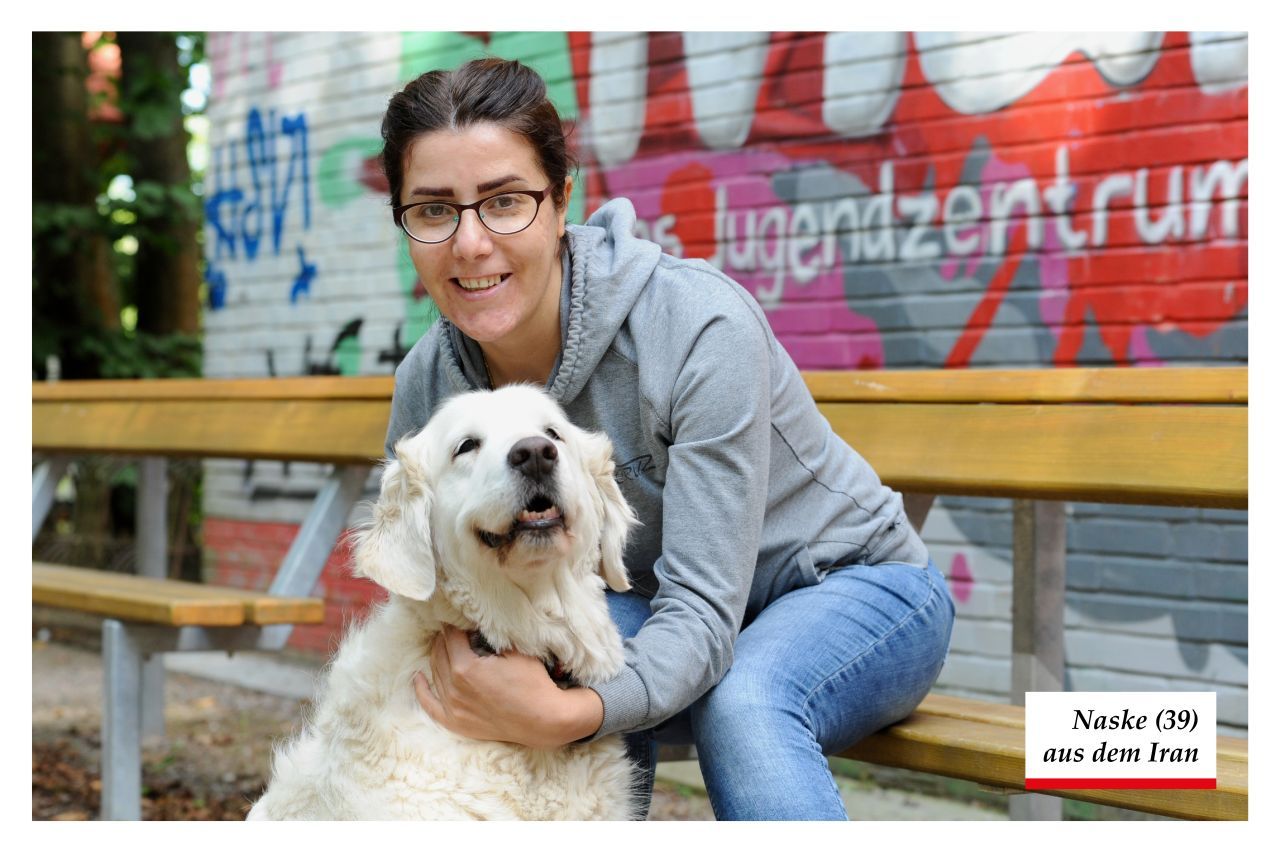 Naske ist seit 2020 in Deutschland. Sie ist allein aus dem Iran nach Deutschland geflüchtet. Naske ist Kurdin. Die junge Frau ist gelernte Kostümbildnerin und möchte diesen Beruf gern weiter ausüben. Deutschland beschreibt sie so: „Hier gibt es alles, was ich in meinem Land vermisst habe: Freiheit, Bildung und offene Menschen.“
