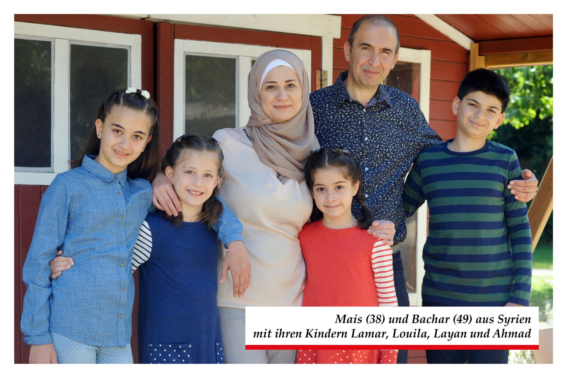 Die Familie ist 2015 aus Syrien gekommen. Mais ist Mathematikerin und studiert in Deutschland Informatik. Bachar ist Apotheker, er arbeitet als Fahrer. In Deutschland genießen sie die Sicherheit und die guten Schulen für die Kinder. Bildung ist ihnen wichtig. Mais überlegt, ob sie jemals so gut strukturiert wie die deutschen Frauen sein wird. Sie vermisst die lockeren und spontanen Kontakte zu den Nachbarn in ihrer Heimat und die Gespräche mit anderen Frauen in der Straße: „Wir trinken morgens vor der Arbeit gemeinsam Kaffee und erzählen. Dadurch bauen wir Stress ab.“ Außerdem vermisst sie die Hochzeiten ihrer Heimat, auf denen viel getanzt wird.