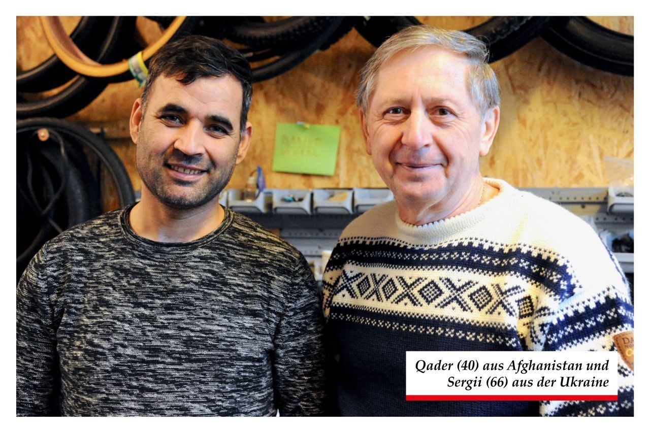 Qaders Flucht aus Ghazni, südwestlich der afghanischen Hauptstadt Kabul gelegen, brachte ihn 2021 über Griechenland und Belgien nach Deutschland. Seine schwangere Frau war bereits 2018 nach Deutschland gekommen. Mittlerweile hat das Paar drei Töchter, die älteste ist sechseinhalb, die mittlere viereinhalb und die jüngste sieben Monate alt. Qader ist gelernter IT-Lehrer. Auch in Hamburg würde er gern in diesem Bereich eine Arbeit finden. Das könnte schwer werden, denn er musste seine Heimat überhastet verlassen und hat keinerlei Dokumente. Seit einem Jahr engagiert er sich zwei bis drei Mal wöchentlich ehrenamtlich in der Fahrradwerkstatt. Bereits in Griechenland kaufte er auf einem Flohmarkt ein altes Fahrrad, reparierte und verkaufte es wieder. So nahm das Schrauben an Rädern bei Qader seinen Anfang. Mit seinem ukrainischen Kollegen verständigt sich der 40-Jährige per Sprachapp.