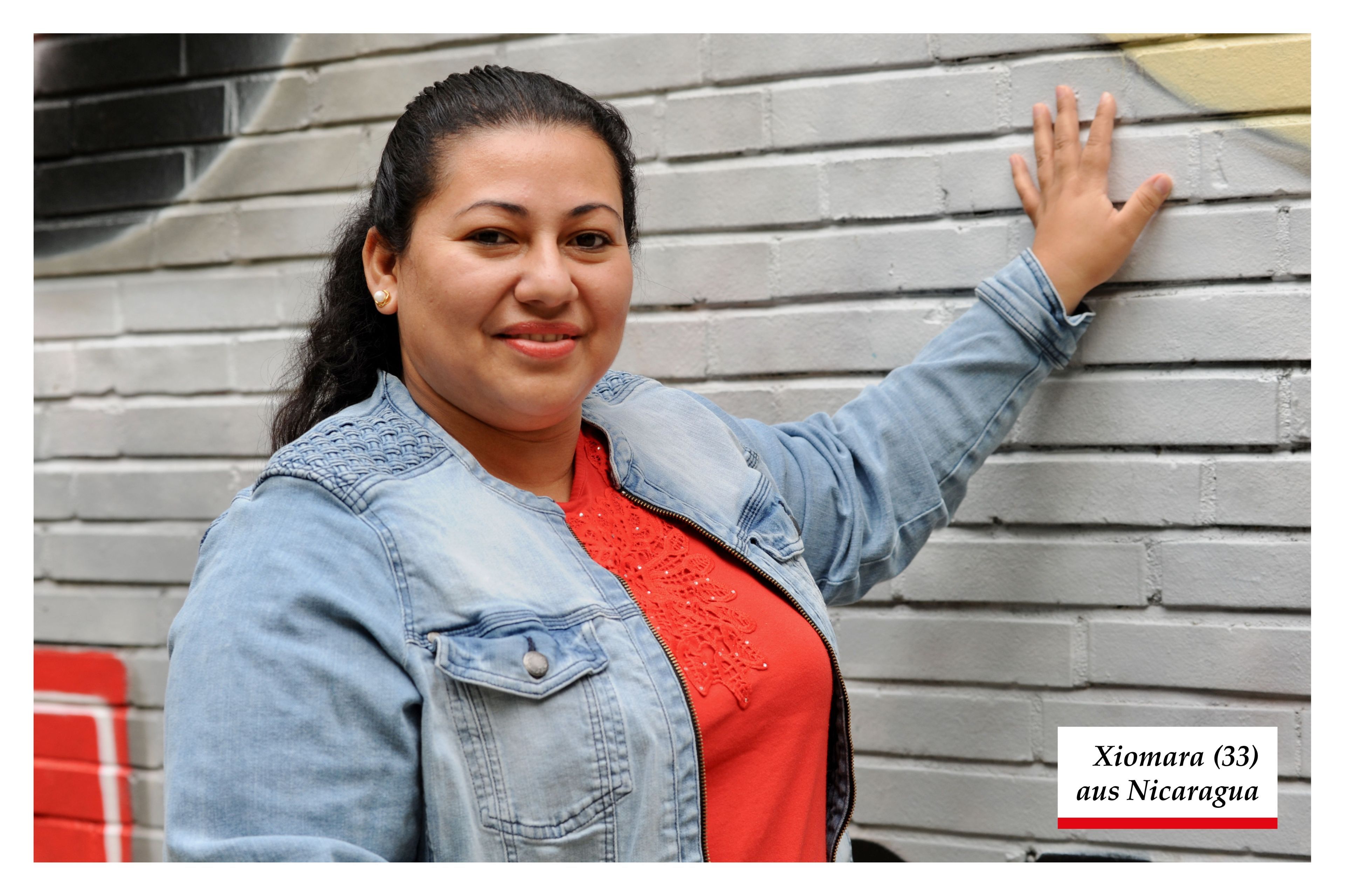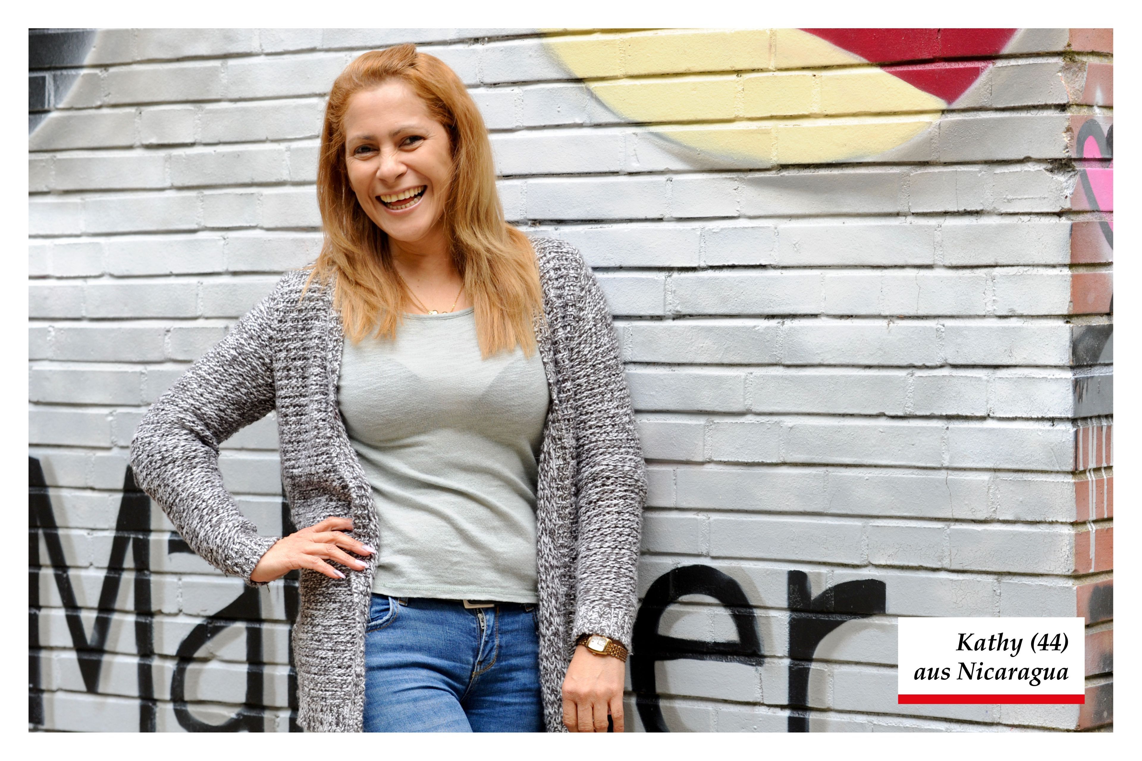 Kathy musste 2019 Nicaragua mit ihren beiden Kindern sozusagen über Nacht verlassen, weil ihr Mann politisch aktiv war. Während des Gesprächs in Vorbereitung auf die Ausstellung erhielt sie die Nachricht, dass sie abgeschoben werden sollte. Sie konnte keinen klaren Gedanken mehr fassen, der Schock war zu groß. Inzwischen konnte die Abschiebung aber abgewendet werden.