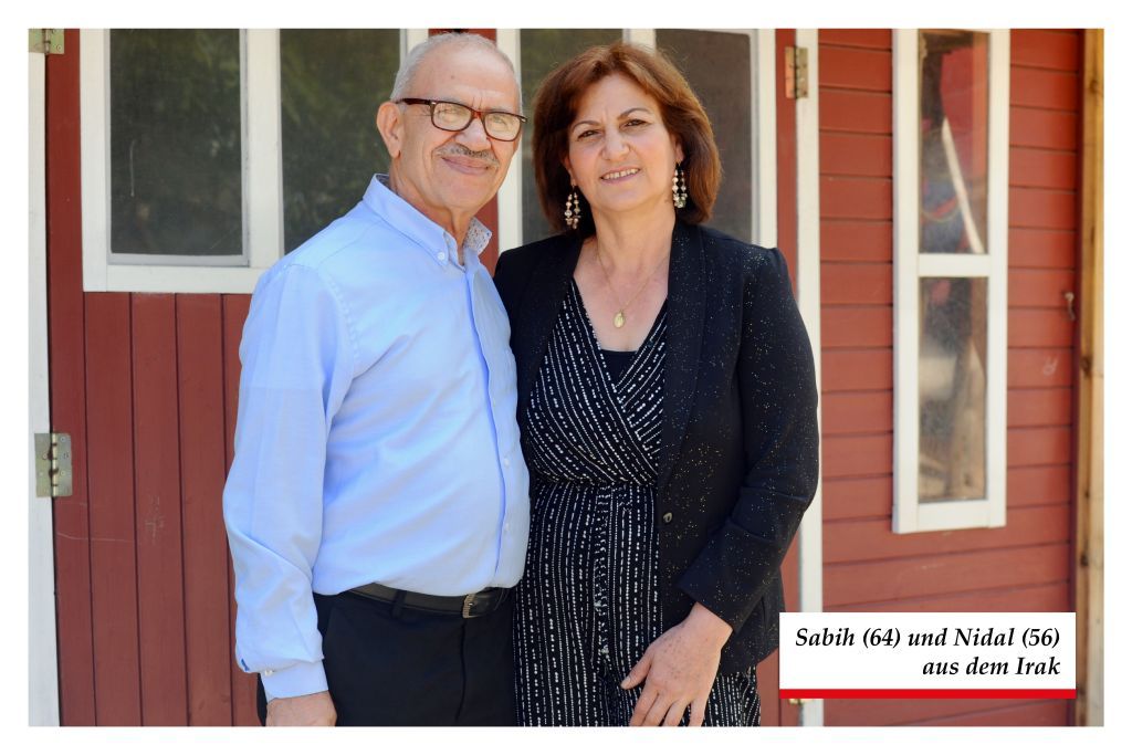 Das Ehepaar kommt aus dem Norden Iraks. Sie haben vier erwachsene Kinder. Sie sind Christen, ihre Muttersprache ist Aramäisch, die Sprache Jesu. Als der IS kam, waren Christen und auch Schiiten bedroht. Sie haben das Nötigste gepackt und sind in eine kurdische Stadt im Norden Iraks geflüchtet, dort waren die Menschen eine Weile sicherer. Später fand das Ehepaar mit den beiden Kindern in Deutschland einen sicheren Ort.