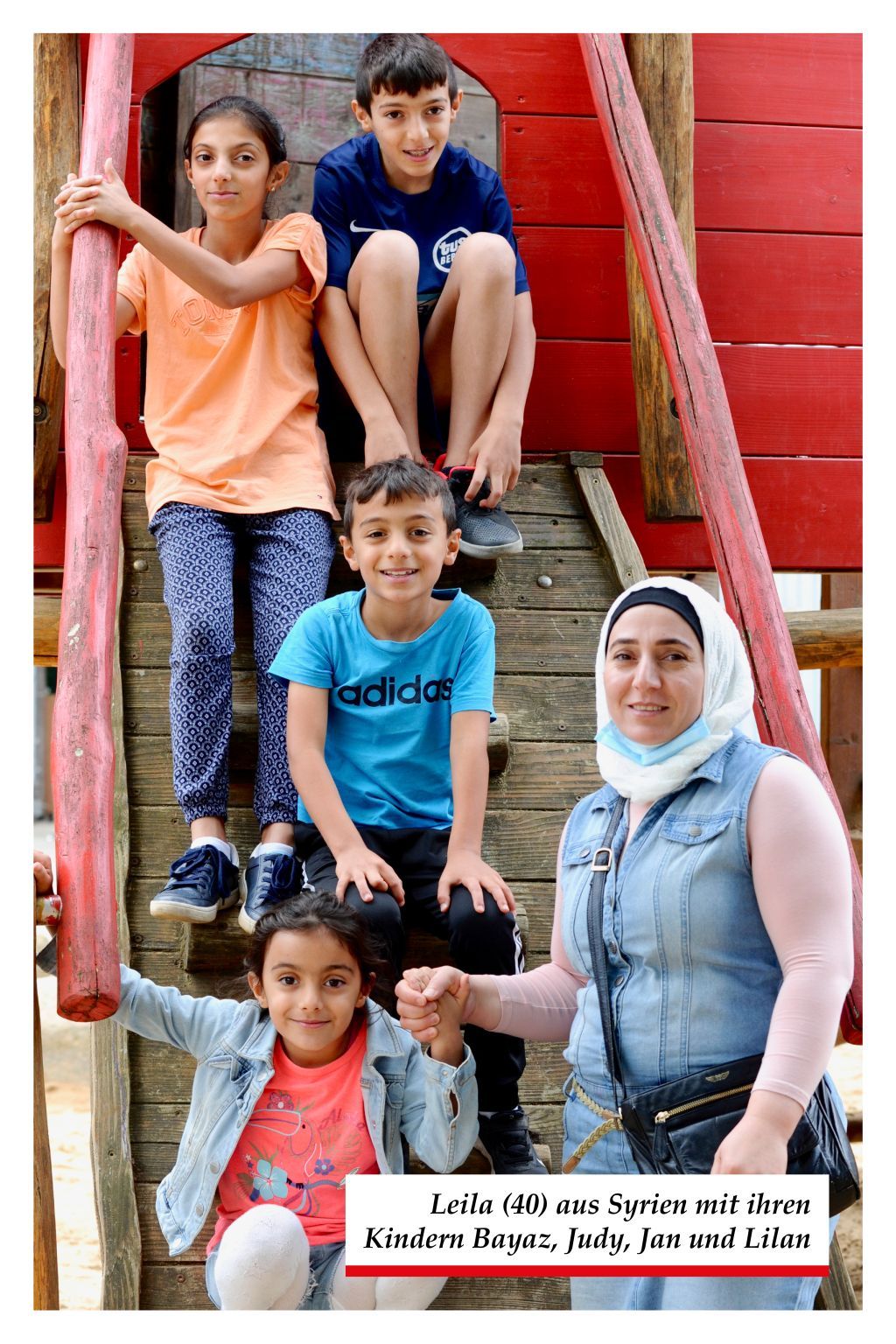 Leila mit ihren Kindern Bayaz, Judy, Jan und Lilan