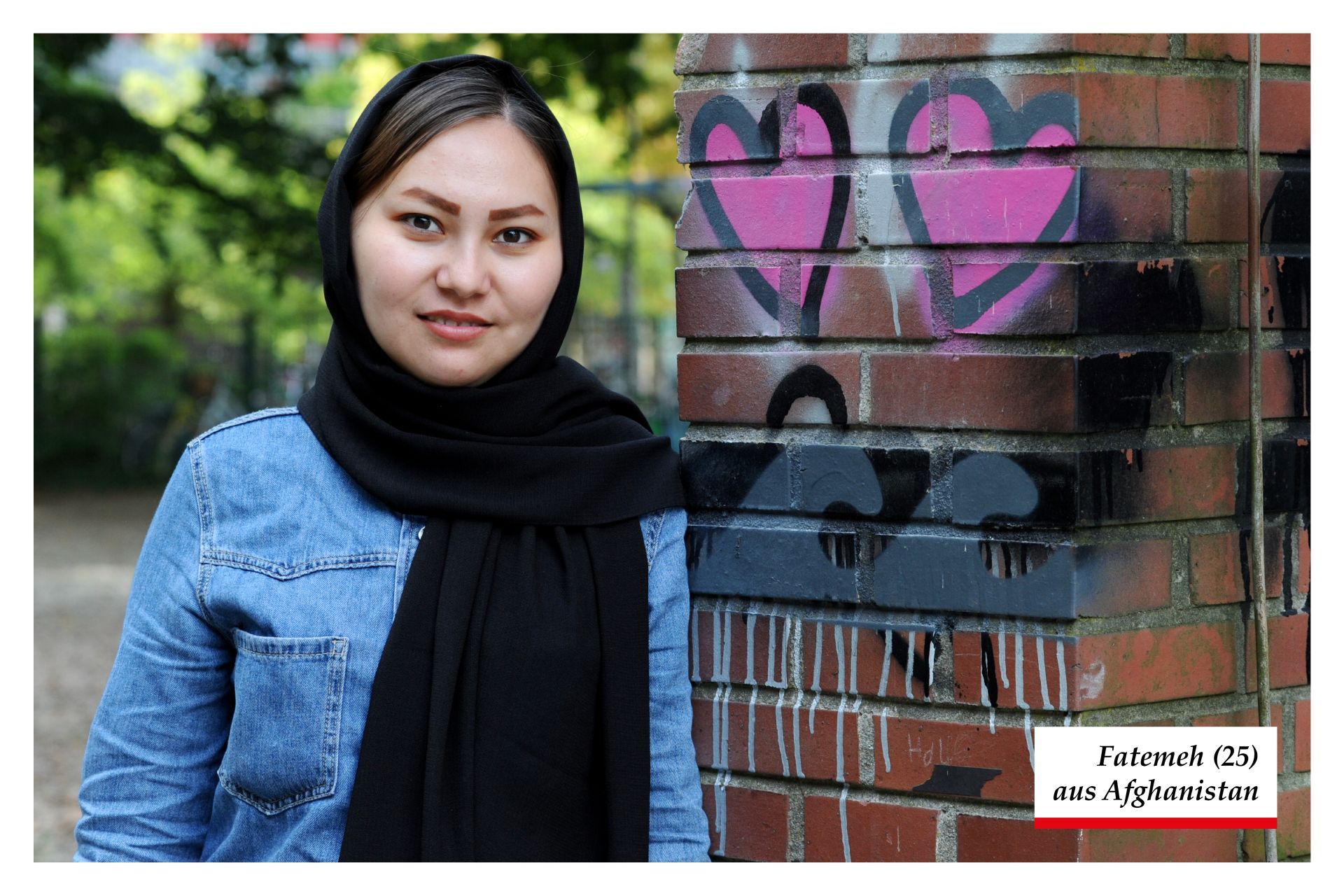 Sie ist 2020 mit ihrem Mann nach Deutschland gekommen. Beide wohnen in einer Unterkunft in Hamburg-Berne. Fatemeh hat in Afghanistan studiert und lernt fleißig Deutsch. Hamburg gefällt ihr sehr gut.