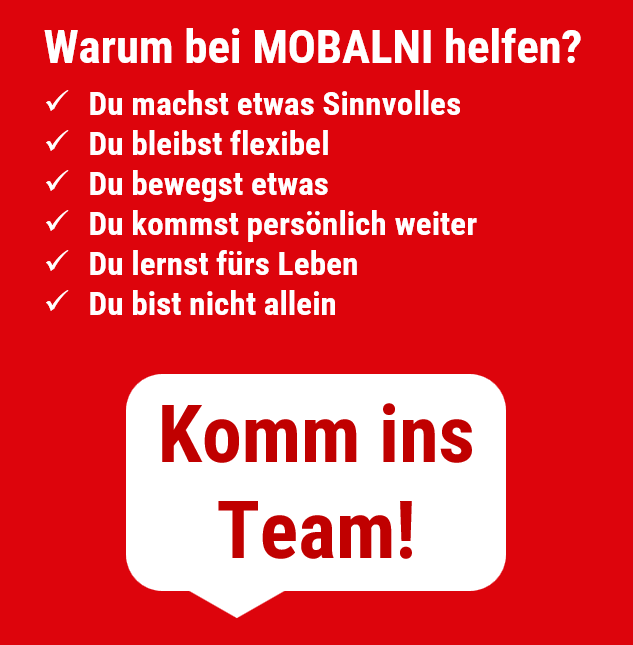 Du hast Lust dich zu engagieren? Du willst etwas sinnvolles für Menschen auf der Straße machen? Dann werde Teil vom MOBALNI-Team!