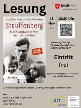 Hildesheim (mhd). Sophie von Bechtolsheim, Enkelin von Claus Schenk Graf von Stauffenberg, ist am Dienstag, 28. November2023, zu Gast in der Hildesheimer Dombibliothek, Domhof 30. Auf Einladung der Malteser in der Diözese Hildesheim liest sie öffentlich um 18.30 Uhr aus ihrem Buch „Stauffenberg – mein Großvater war kein Attentäter.“