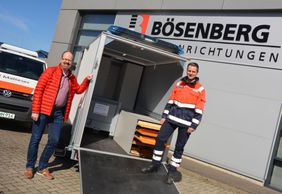 Ehrenamtlich war das nicht mehr zu leisten, also sprang der Fahrzeugeinrichter Bösenberg ein. Vermittelt durch Christian Berger – der früher bei Bösenberg arbeitete – erledigte Michael Steiner, Gesellschafter und Geschäftsführer bei Bösenberg, den Ausbau mit seinen Mitarbeitern innerhalb von drei Tagen. Das Einrichten des Anhängers kostete rund 2.500 Euro. Zudem hat Bösenberg für ein anderes Fahrzeug der Malteser einen Klapptisch für Schreibarbeiten gestiftet, so dass sich der Gesamtwert der Bösenberg-Spende auf rund 3.000 Euro erhöht.