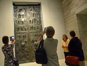 Seit 1000 Jahren erzählt die Bernwardtürim Hildesheimer Dom vom Leben Jesu; Bildquelle: Lukas/Malteser