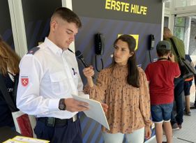 Ausbilder Philip Doersing vertrat die Malteser im Interview und stellte die Arbeit der Malteser vor.