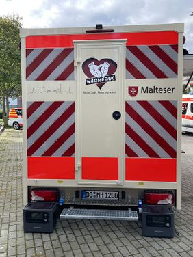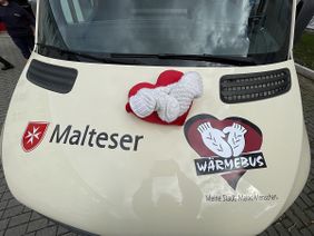 Der Malteser Wärmebus, wie ihn die nachfolgenden Autos sehen werden.