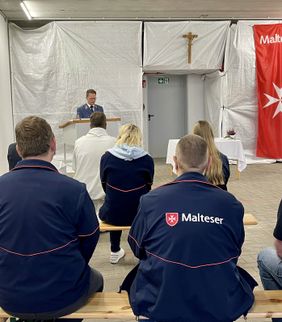 Zu einer kleinen Dank- und Gedenkfeier fanden sich die Einsatzkräfte der Malteser aus dem Bezirk Ostwestfalen-Lippe zusammen, die während der Flutkatastrophe im Juli 2021 in den betroffenen Gebieten waren. Sie folgten der Einladung der Diözesanleitung und dem Referat Notfallvorsorge zu den Maltesern in Paderborn. Die Gliederung hatte als Gastgeberin der Veranstaltung die Halle mit ihren Helferinnen und Helfern in einen (gut durchlüfteten) Versammlungsraum umgestaltet.