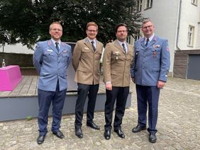 Fotocredit ©Malteser Lage Sven Röttger (links) und Nils Brandes (rechts von den Maltesern Lage freuen sich mit Dr. med. Johann P. Addicks und Patrick Benzler