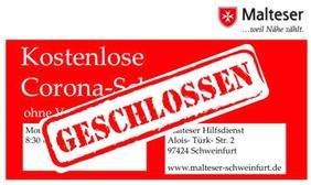 Seit Montag, 27. September 2021, ist auch die Malteser Corona-Teststelle in der Dienststelle Schweinfurt, Alois-Türk-Straße, geschlossen.