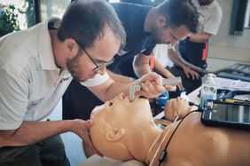 „Bei unserem Fortbildungsformat geht es nicht ums Zuschauen, sondern ums Machen“, erklärt Thomas Schüßler, Ausbildungsleiter der Malteser in Fulda. Das Zirkeltraining an sechs Stationen hatte es in sich: Es galt zum Beispiel, kritische Blutungen zu stillen oder den Brustkorb mittels Nadeldekompression zu entlasten. An einer anderen Station sicherten die Retterinnen und Retter die Atemwege mit verschiedenen Atemwegshilfen, übten an Schweineluftröhren das Öffnen der Atemwege in Höhe des Kehlkopfes (Koniotomie) und auch den Einsatz des so genannten Videolaryngoskops. Diese Mini-Kamera bietet eine bessere Einsicht in die Atemwege und ermöglicht meist eine schnellere und erfolgreichere Intubation. Von Komplikationen bei der Geburt bis hin zur Untersuchung schwerer Traumata mittels Ultraschalls (eFAST-Sonografie) – die Schulung war thematisch sehr breit angelegt.