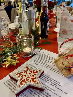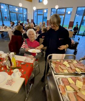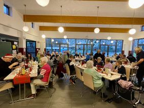 Schon bevor das Café öffnet, ist der Malteser Fahrdienst unterwegs, um einige Gäste abzuholen, die auf Unterstützung angewiesen sind. Fast 30 Besucherinnen und Besucher kamen diesmal zusammen, um gemeinsam die Adventszeit zu feiern. Die liebevoll gedeckten Tische, geschmückt mit zu Teil selbstgebastelter Weihnachtsdeko, sorgten für festliche Stimmung. Neben einer verlockenden Auswahl an Kuchen gab es auch herzhafte Schnittchen – für jeden Geschmack war etwas dabei.