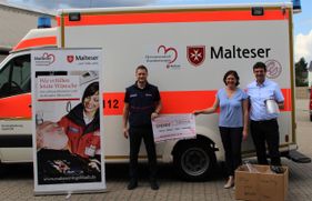 Gesichtsvisiere und Spende für „Herzenswunschkrankenwagen“