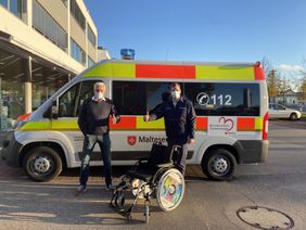 "Ein herzliches Vergelt's Gott an die Firma Spörer AG für die tolle Unterstützung!" - Für das Team des Herzenswunsch-Krankenwagens nahm der Ingolstädter Ortsbeauftragte eine großzügige Spende entgegen: Alexander Bischof von der Firma Spörer übergab einen Rollstuhl für die Fahrten, mit denen die Malteser Schwerstkranken einen letzten Herzenswunsch erfüllen. (Bild: Spörer AG)