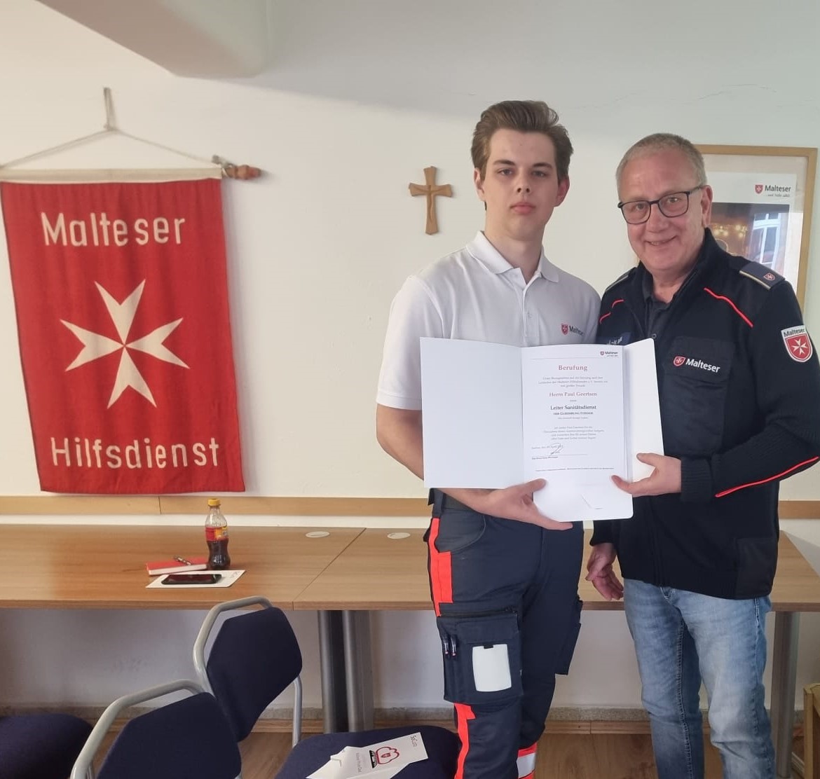 Herzlichen Glückwunsch an Paul Geertsen und Kimberly Eggerstedt zur Berufung durch den Beauftragten der Itzehoer Malteser Jörg-Michel Raida (Foto, rechts) als Leiter und stellvertretende Leiterin des Sanitätsdienstes der Itzehoer Malteser!