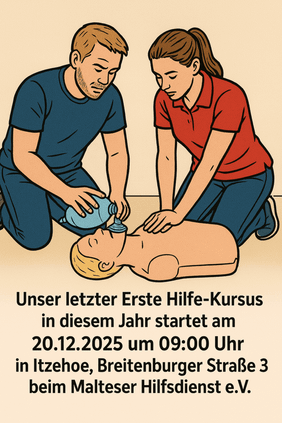 Am Sonnabend, den 20. Dezember 2025, findet unser letzter Erste-Hilfe-Kursus in diesem Jahr statt.