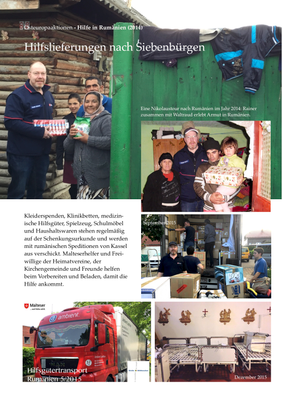 Im Rahmen der Kinderaktion Hoffnungszeichen sollen dann auch die Schulmöbel im Dezember nach Rumänien gebracht werden und Hilfsgüter, die im Januar 2020 ein Armendorf erreicht haben (Reportage).