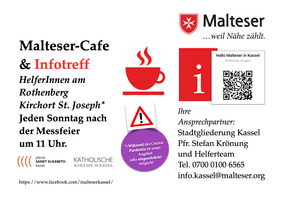 Die Botschaft auf dem Plakat und in den sozialen Medien ist zugleich auch das Konzept für den Treffpunkt und das Malteser-Cafe am Rothenberg “Wir kommen zusammen, bieten Kaffee und Tee an und geben gerne Auskunft, damit auch Interessenten, Besucher und Pilger einen verlässlichen Anlaufpunkt haben.”