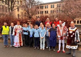 Am 31. Januar fand der erste Wohlfühlmorgen für obdachlose und arme Menschen im neuen Jahr statt. Wie bereits in den Jahren zuvor, konnten die Gäste, die Malteser-Helfer:innen und die Schülerinnen der Ursulinenschule sich auf ein kleines Karnevalsprogramm freuen. Den Auftakt machte Weihbischof Ansgar Puff mit roter Perücke und einem sehr gelungenen karnevalistischen Impuls. Danach füllte sich der Saal mit zahlreichen ‚Appelsinefunke‘, die Nippeser Bürgerwehr war mit ca. 130 Repräsentanten incl. Stabsmusikzug und Tanzpaar gekommen. Den Höhepunkt bildete das Kölner Dreigestirn - Prinz, Bauer und Jungfrau fanden den richtigen Ton, sangen und schunkelten mit den Gästen. Den Abschluss bildeten die ‚Lyskirchener Hellige Knäächte un Mägde‘ und die Kindertanzgruppe der EhrenGarde Köln, die trotz Platzmangel im Saal mit ihren Tänzen für bewegte Stimmung sorgten.