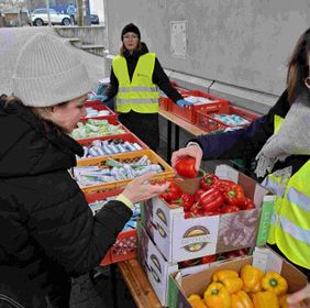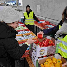 Bereits am frühen Morgen warteten zahlreiche Gäste vor dem Tor. Diese hatten zuerst die Möglichkeit, sich in der Kleiderkammer mit gespendeten Kleidungsstücken zu versorgen. Dank der ‚Winterhilfe des Landes NRW‘ konnten im Vorfeld Unterwäsche und Socken eingekauft werden, da diese aus hygienischen Gründen grundsätzlich nicht als Spenden angenommen werden. Alle 120 Gäste waren im Ursulasaal zu einem leckeren Frühstück incl. Rührei und frisch gebackenen Waffeln eingeladen. Von der Malteser-Feldküche wurde zusätzlich eine heiße Suppe angeboten. Im Saal unterstützen Schülerinnen der Ursulinenschule u.a. beim Service und nutzten die Möglichkeit zu Gesprächen an den Tischen. Als ‚letzte Station‘ war wieder eine Ausgabestelle mit Hygieneartikeln und Vitaminen - in Form von Paprika, dunklen Trauben und Tomaten – aufgebaut.