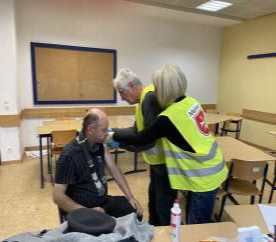 21 Malteserinnen und Malteser sowie 28 Schülerinnen des Gymnasiums haben den zahlreichen Gästen ein umfangreiches Frühstück mit u.a. Rührei bereitet und es fanden viele Gespräche statt. Die Kleiderkammer war gut gefüllt – unterstützt von Kleidung und Schuhen aus einer Sammlung in der Schule -, so dass für jeden etwas dabei war. Dieses Mal haben zwei Friseurinnen von der IB West Friseurfachschule kostenlose Haarschnitte angeboten, die von 20 Gästen sehr gerne angenommen wurden. Die ehrenamtliche Fußpflegerin war mit 10 Gästen auch vollauf beschäftigt. Erstmalig wurde – durch Unterstützung eines medizinischen Teams der Malteser Medizin für Menschen ohne Krankenversicherung – eine Grippeschutzimpfung angeboten. Den Impfstoff hatte das Gesundheitsamt zur Verfügung gestellt.