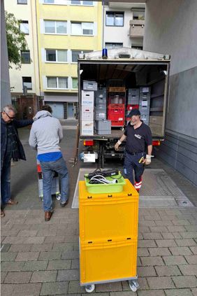 Wie immer hatten fleißige Malteser-Helferinnen und -Helfer alle Vorbereitungen getroffen und den LKW am Vortag gepackt, sodass dieser am Samstagmorgen pünktlich um 8.15 h zum Aufbau in der Ursulinenschule eintraf.