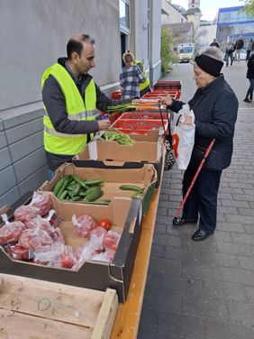 Zum Abschluss hatten alle Gäste die Möglichkeit, noch Hygieneartikel mitzunehmen und dieses Mal gab es kein Obst, sondern Gemüse … Möhren, Gurken, Paprika, Tomaten, was auch gerne mitgenommen wurde.
